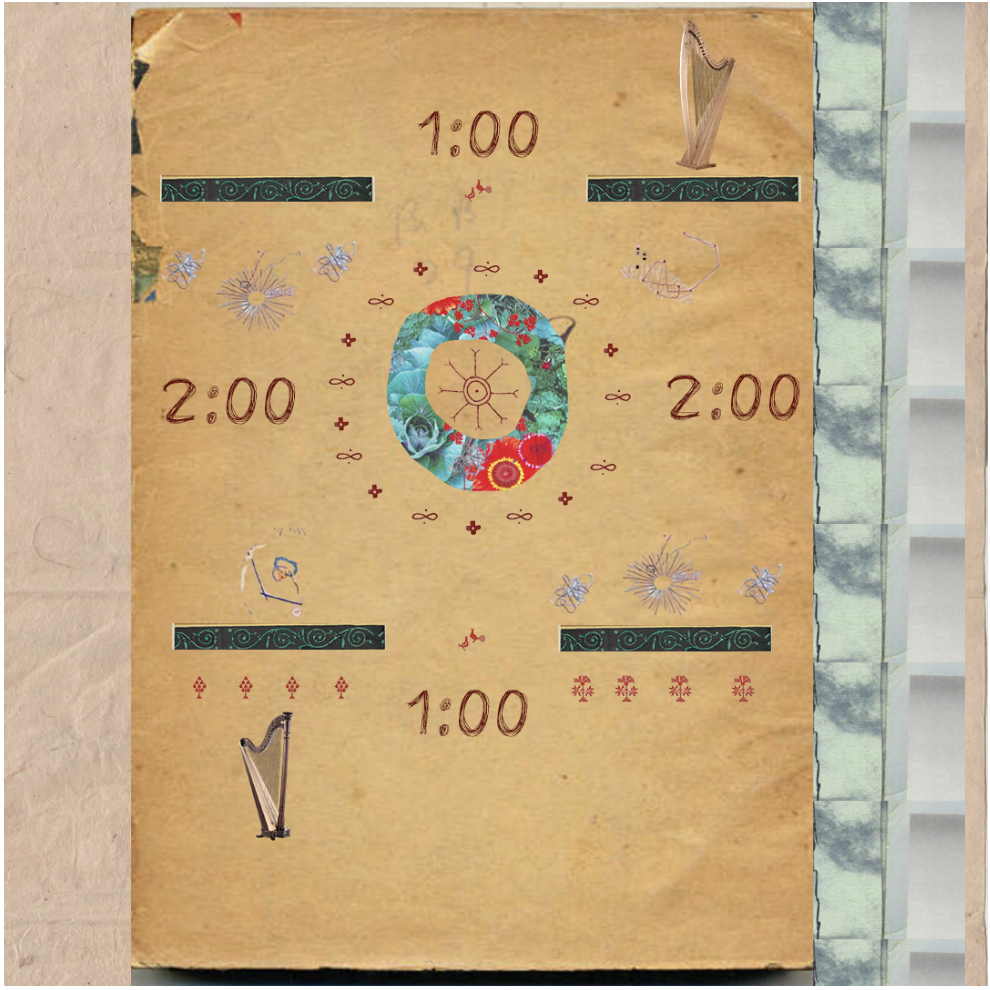The two harps make portals to the sídhe (pronounced she, or faerie) through bowing, glissandi, rubbed soundboards, and harmonic “stars.” They revolve around a reel of archival sounds.